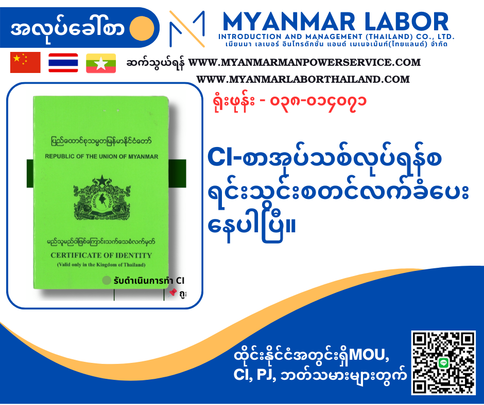 CI-စာအုပ်သစ်လုပ်ရန်စရင်းသွင်းစတင်လက်ခံပေးနေပါပြီ။